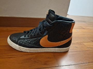 Scarponcini Nike da donna in pelle nera con ricami di bronzo.
