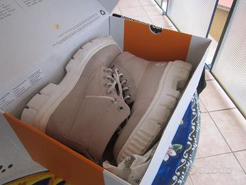 Vendo scarponcini donna TIMBERLAND ORIGINALI in tela color beige, n. 40, usati pochissimo ! In confezione originale. € 99,00