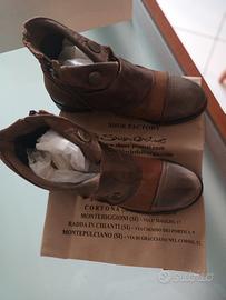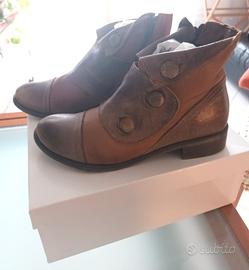 Scarponcini taglia 37 della rinomata pelletteria toscana PRATESI. Bicolore con bottoni in ottone, pellame morbidissimo, calzata super comoda, pratica chiusura con zip.