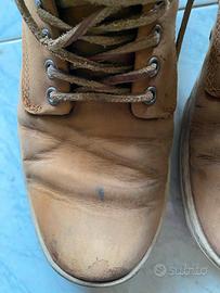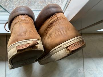 Scarpe molto usate con macchie e suole molto consumate. Condizioni discrete.