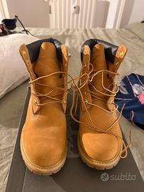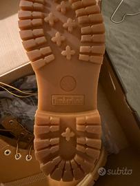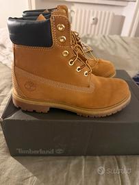 Scarponcini Timberland color beige/camel, mai indossati. Modello iconico con suola carrarmato e allacciatura frontale. Comfort elevato e perfetti per stagione autunno/inverno. Condizioni: nuovi (mai usati) Taglia: 39,5 Vestibilità: regolare