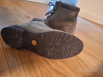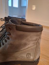 Scarponcini Timberland donna scamosciati colore verde salvia, numero 40, suola in gomma nera come nuova. Modello affusolato. Usati pochissimo. All' interno come nuovi, all' esterno qualche segnetto.