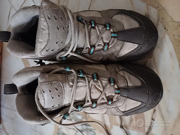 scarponcini da trekking donna Marca Quechua. con qualche segno di usura sulle parti in tela comunque integre. attenzione c è scritto misura 36 ma puo andare bene a un 35!