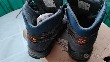 Le scarpe sono state utilizzate e presentano i normali segni di usura esterni sulla tomaia in scamosciato e sulla suola, come tipico per l'attrezzatura da trekking, ma mantengono intatta tutta la loro funzionalità tecnica e il supporto per la caviglia. Sono incluse nella loro scatola originale (prezzo di listino originale visibile di 105,00 €, acquistate in saldo a 90,00 €). Un'ottima scelta per chi vuole un prodotto professionale, duraturo e sicuro per le proprie avventure all'aria aperta senza spendere il prezzo del nuovo.