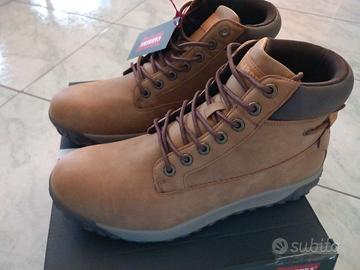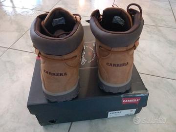 Scarponcini uomo Carrera N. 44, tomaia robusta in similpelle, suola antiscivolo con fondo carrarmato, collare imbottito che dà maggiore sostegno, chiusura con lacci e occhielli in metallo, color cammello con dettagli più scuri. Ideali per le giornate fredde e piovose. Appena acquistati ma purtroppo non vanno bene di misura.