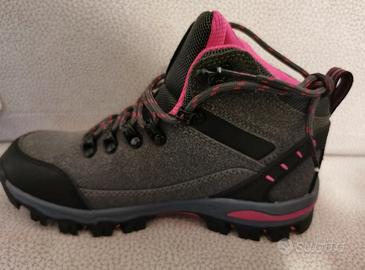 Scarponcino da trekking nuovo colore grigio /rosa, nuovo, parte superiore in pelle microfibra resistente e suola in gomma antiscivolo.