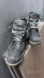 Scarponcino stringato e scamosciato, colore grigio talpa in buone condizioni.