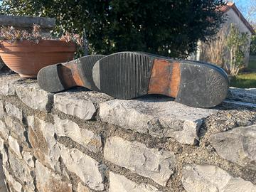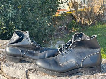 Scarponcino militare nero vitello taglia 46, probabile corpi polizia italiani ma ottime per divise inglesi. Scarpa nuova suolata con gomma non per usura ma per avere piu grip ma mai usate.