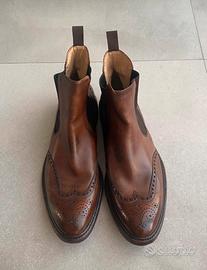 Modello Chelsea con dettagli broguing sulla punta e sui lati, elastici laterali per una calzata pratica e confortevole.