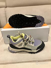 Affronta sentieri o montagne con queste scarpe basse impermeabili con lacci. Il plantare in EVA e l'intersuola in EVA stampata a compressione ammortizzano i tuoi piedi, mentre la suola in gomma con battistrada e le punte in gomma da arrampicata garantiscono trazione. Inoltre, sono realizzate con materiali di qualità, come la pregiata pelle Timberland e la fodera in tessuto ReBOTL contenente almeno il 50% di plastica riciclata.