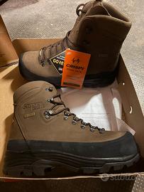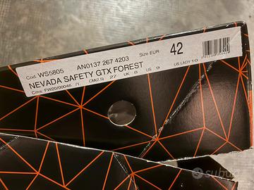 MAI UTILIZZATI!!!Gli scarponi Nevada Safety GTX Forest della Crispi sono scarponi leggeri e confortevoli, pensati per ambienti dove sono richiesti gli standard di sicurezza. Hanno una tomaia idrorepellente, una fodera impermeabile e e la soletta estraibile super traspirante per permettere al piede di rimanere asciutto anche dopo tante ore di utilizzo. Massimo grip e aderenza grazie alla suola in Vibram. Gli scarponi sono caratterizzati dalla presenza del puntale e dalla lamina antiperforazione, per chi li utilizza negli ambienti dove viene richiesta una certa sicurezza.
