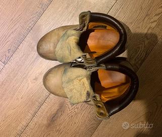 Scarponcini Timberland iconici in vera pelle. Modello con effetto vintage e finitura vissuta che fa parte del design originale, non si tratta del solito modello! In buone condizioni generali. Suola robusta, perfetti per look casual o outdoor. Questi scarponi Timberland riportano la taglia 9W (indicata all'inizio della riga), che corrisponde a: