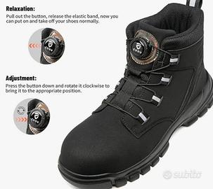 Scarpe antinfortunistiche alte KOIFISH, modello unisex. - Punta in acciaio. - Suola antiscivolo. - Materiale esterno in similpelle. - Fodera interna in tessuto traspirante. - Soletta estraibile.