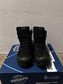 Scarponi da lavoro, in ottime condizioni, vendo per inutilizzo, taglia 45 EU, prezzo trattabile. PREZZO DA NUOVO: 170 euro. Descrizione del prodotto: - Marca/Modello: HAIX Black Eagle Safety 40 mid (black/black) - Classe di sicurezza: S3 - Certificazione: CE EN ISO 20345:2011 S3 HRO HI CI WR SRC - Impermeabilità: waterproof tramite membrana GORE-TEX® - ESD: dissipativo/antistatico (DIN-EN 61340-5) - Puntale: composito (toe cap) - Struttura: design metal-free (senza metallo) - Tomaia: microfibra/tessile (traspirante) - Chiusura: allacciatura classica - Suola: molto anti-scivolo / grip elevato (SRC) - Risuolabile: sì - Plantari: certificato per plantari ortopedici (DGUV 112-191) - Altezza: ~13 cm (mid) - Peso indicativo: ~685 g per scarpa