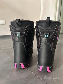 Scarponi per donna da Snowboard Salomon Taglia 40 1/3 Si consiglia di acquistare un numero piu grande del proprio abituale per la vestibilita dello scarpone! Condizioni ottime Usato 2 volte