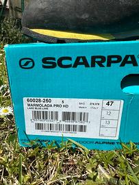 Vendo scarponi da trekking marca “Scarpa” modello Marmolada Pro HD n.47, usati pochissimo e trattati con cura. Sono scarponi comodi, robusti, protettivi, impermeabili ma allo stesso tempo leggeri, adatti ad usi escursionistici impegnativi che semplici passeggiate. Tomaia in pelle scamosciata, fodera impermeabile HDry, suola Vibram… Sono costretto a venderli perché dopo averli acquistati ho avuto necessità di utilizzare un plantare ortopedico e purtroppo con il plantare mi risultano stretti/piccoli. Consegna a mano e/o spedizione con corriere a Vs. carico. Pagamento solo contanti e/o tramite PayPal.