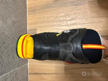 Tomaia in pelle scamosciata idrorepellente, rinforzi in pelle, finitura in carbonio antiabrasiva. Fodera interna con costruzione a bootie termosaldata e membrana waterproof. Suola in Vibram Mulaz EVO.