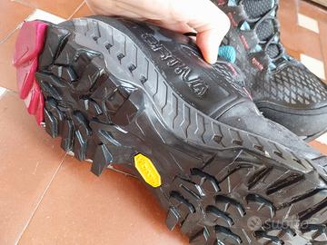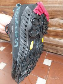 Scarponi La Sportiva Spire GTX da donna, mis 39,5, con suola Vibram a carrarmato antiscivolo. Scarpa molto leggera, comoda e traspirante, in Goretex, ideale per trekking e camminate anche su terreni impegnativi. Usati pochissimo, praticamente come nuovi. Vendo perché troppo grandi.