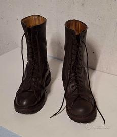Vendo per inutilizzo paio di anfibi d'epoca marchio Due Mondi, originali, taglia 42 (esercito italiano). Puntale rinforzato. Colore Marrone. Pelle Vera. Gli scarponi sono usati ma ben tenuti come da foto. Fabbricati tra la fine degli anni '80 e gli inizi del '90. Made in Italy. Prezzo: €29,00 (+ eventuale spedizione con Poste o InPost) Per info e foto lascio mio recapito whatsapp tramite messaggio privato. Consegna a mano zona Udine o spedizione in tutta Italia. Per info contattami. Rispondo velocemente.