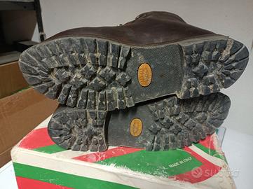 Scarponi montagna marca Scarpa in vacchetta indistruttibili n.44 sempre ingrassati e riposti in armadio asciutto.Suola ancora ottima,con stringhe.