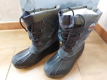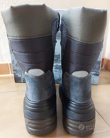 Stivali invernali doposci Olang Canadian uomo. Misura: 47/48 (UK 12/13) Condizioni: CALZATE IN UNICA OCCASIONE Chiusura con lacci,scafo in poliestere imbottito con riporti in Eco-scamosciato,fodera in lana poliestere,sottopiede multistrato con isolamento in alluminio, suola in gomma con ottimo grip. Ideali sia per la città che per le ciaspolate. Prodotto Made in Italy originale. Pagati 78 euro.