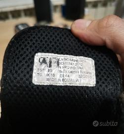 come da immagini scarponi usati di marca 3 stileg con una scucitura come in foto sul tallone e segni di usura stato suola in vibram 85% .sono scarponi comodi ma da usare in ambienti asciutti ed estivi .il valore degli scarponi all' acquisto nuovi è stato di 170-180€ io ne chiedo 60 € meno della metà per il ripristino della cucitura .abbino pure lacci nuovi da passare .interno suola senza plantare si consigliano quelli in gel .