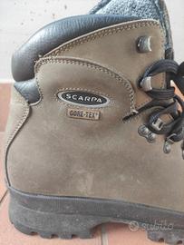 Scarponi da trekking SCARPA modello Mito GTX in pelle Nabuk idrorepellente con membrana Gore-Tex, robusti, numero 42. Acquistati nei primi anni 2000 e usati SOLO in due uscite. Infatti come da foto la suola è in perfette condizioni. Modello datato ma di grande qualità e fattura (prezzo originale 190€) ideale per passeggiate in montagna. Prezzo leggermente trattabile. Nel profilo è presente un annuncio identico con stesso modello ma in numero 44. è possibile accordarsi per visionarli dal vivo senza impegno.