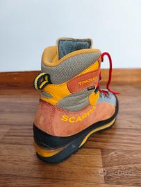 Modello: Scarpa Triolet GTX (versione pelle scamosciata arancione/gialla).
