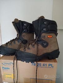 Stupendi scarponi di sicurezza antitaglio, tutti in nabuk che avvolge tutto il piede senza cuciture per una migliore impermeabilita... Ottimi per caccia traking e lavoro... Ovviamente nuovi
