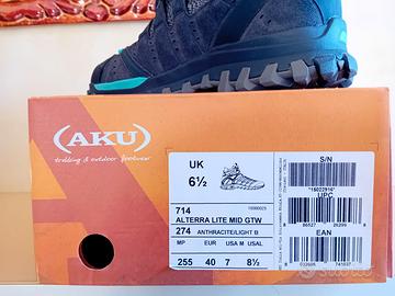 Vendo un paio di scarponi nuovi AKU ALTERRA LITE MID GTW numero 40 mai usati con scatola un paio di lacci di ricambio neri. Presi per mio figlio, a causa di un difetto sono stati cambiati dall'azienda con questo modello a ottobre 2025 che però è già diventato piccolo.