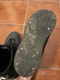 Vendo scarponi da wading Guideline Alta, taglia 43, con qualche segno di usura ma in buone condizioni. Dotati di suola in feltro e chiodi Simms già applicati. I chiodi sono usati, ma possono ancora essere utilizzati prima di doverli sostituire (vedi foto allegata).
