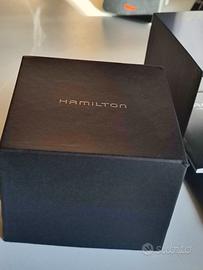 Box Scatola Completa Orologio Hamilton scatola , controscatola, manuale d' istruzioni. Misure: H 9,5 cm , L 12,5 cm , L 12,5 cm . Tenuta in ottimo stato. Controscatola con angoli leggermente deformati ( visibile in foto)ma la scatola interna non ha graffi ne abrasioni. Se hai dubbi o domande contattami.