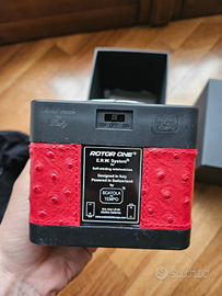 Vendo porta orologio marca scatola del tempo rotor one, colore rosso tendente al bordeaux in pelle