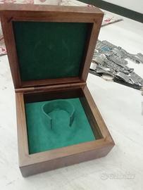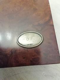 Scatola in radica per orologi girard perregaux, 30 anni Fiat con logo in argento