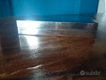 Elegante scatola in acciaio con interno in plastica nera, il cui disegno sul coperchio ricorda perfettamente una ricercatissima e rara borsetta da donna, la Charlotte Olympia Black Geometric Resin Clutch. All'interno è presente l'adesivo della gioielleria presso la quale fu acquistata. In ottime condizioni. Misure di riferimento in foto. Le foto descrivono esattamente la scatola e sono parte integrante della descrizione. Visita il mio profilo per altri oggetti di design e non solo.