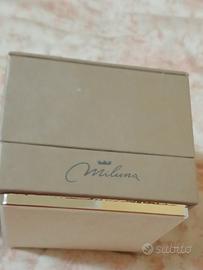 Scatola Miluna nuova ,con la base in metallo e il panno di velluto .
