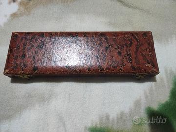 Scatola porta collana 22 cm lunghezza, 7 di larghezza e 2 cm di altezza . Probabilmente scatola in legno.