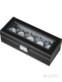 Vendo scatola porta orologi 5 posti in pelle e vetro con chiusura d’acciaio