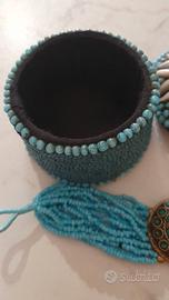 Scatolina portagioie, anelli, orecchini o il suo bracciale abbinato. Perline tibetane e conchiglie conferiacono a questa scatolina la sensazione di etnico.