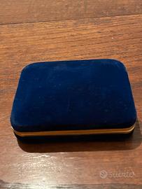 Una meravigliosa scatola portagioie vintage, anni '50/'60 , in velluto blu Si apre e si chiude bene.
