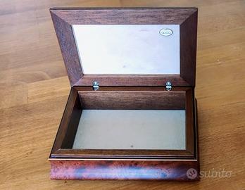 Scatola Portagioielli in radica e, sul coperchio, placca in Argento 925‰.