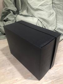 Scatola Prada + carta velina coordinata Ottime condizioni Colore Blu notte molto scuro Misure: 41,5 x 31 h 19 cm