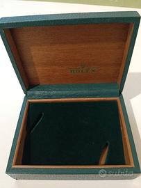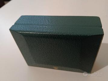 ROLEX Scatola vintage anni 70/80 Rara "Ref. 67.00.3 "Trapezio" Adatta e coeva per GMT-Master 1675 ma anche per Submariner 5512 5513 1680 ed altri dell'epoca In pelle verde con logo e finiture dorate Interno in legno con logo in verde "Creation Genève" Inserto portaorologio in stoffa verde dell'epoca Condizioni splendide con lievissimi segni di uso e del tempo Chiude perfettamente Le foto sono parte integrante della descrizione Misura: cm. 13 x 10,5 x 5 circa Autentica ROLEX garantita