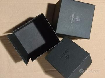Scatola e contro scatola orologio Zodiac colore nero antracite. Misure 9.5*9.5*10cm. Nuova e inodore incluso cuscino interno pelle nera.