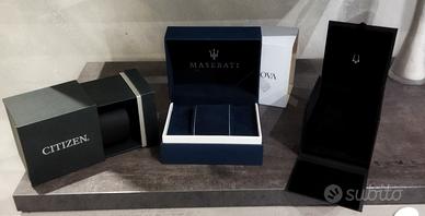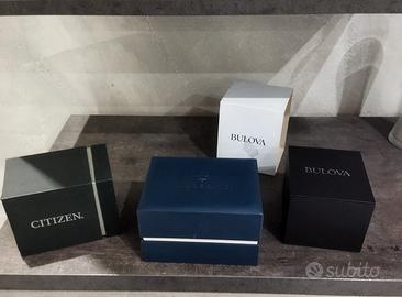 scatole vuote o box per orologi bulova citizen e maserati in ottime condizioni,per completare il corredo del vostro orologio. 10 euro cadauna.