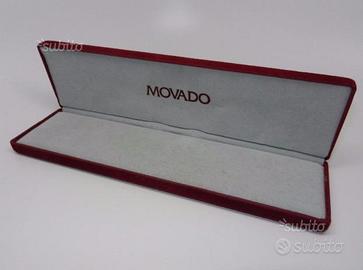 Scatola per Orologio Originale Movado. In ottime condizioni generali, Esterno velluto rosso e bianco interno, adatta per ogni orologio da uomo e da donna con cassa sottile. Stile classico, anche per modelli Vintage Anni 70. Dimensioni 26 x 7 x 2,5 cm