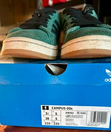 sneakers Adidas Campus 00s originali, colore verde con strisce nere, taglia 38.