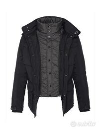 SCHOTT , modello "FIELD", giubbotto invernale , da uomo , taglia L , colore NERO , caratteristiche: -tessuto esterno nylon -imbottitura interna 100% poliestere -cappuccio estraibile nel collo -chiusura con cerniera e patta con bottoni -8 tasche frontali (4 con apertura dall'alto chiuse con bottoni ; 4 laterali di cui due con cerniere) -ulteriori tasche interne con bottoni o cerniera di cui una porta-telefono -imbottitura frontale chiusa con bottoni e rimovibile tramite cerniere -polsini elasticizzati -regolabile in vita -lunghezza media e vestibilità regolare modello ORIGINALE NUOVO MAI UTILIZZATO Vendo ad euro 100