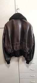 Iconica giacca in pelle vintage Schott NYC. #SCHOTT - Colore marrone intenso. - Design classico bomber. - Collo in pelliccia sintetica rimovibile. - Tasche frontali con patta. - Fodera interna gialla.