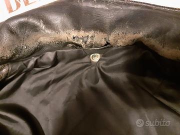 vendo Perfecto meravigliosamente consumato nel tempo, pezzo da museo, integro con collo consumato e senza ormai nessuna ettichetta tranne un lembo illeggibile all'interno del taschino davanti, assolutamente autentico, la taglia corrisponde ad una 46 italiana